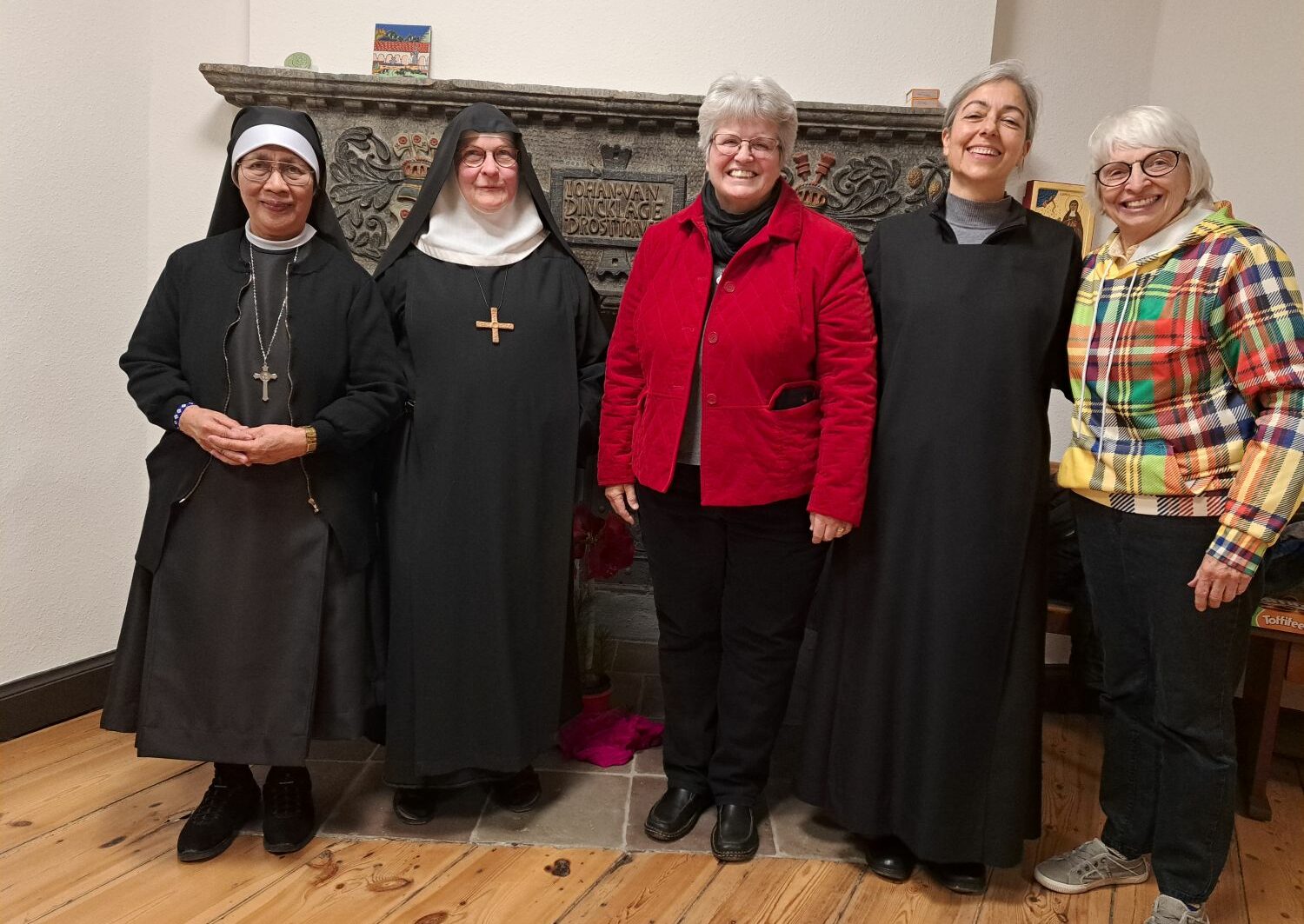 vom 19. bis 23. Januar tagte der CIB Adminstrativrag in Dinklage. Wir freuten uns, Sr. Lynn McKennzie, Moderatorin, Sr. Cecile Lanas von den Philipinen, Sr. Maria del Mar, Montserrat und Sr. Mary Luke Jones, Sekretärin, USA, bei uns begrüßen zu dürfen. Sr. Hilda Scott, Australien und Sr. Anna Brennan, Großbritannien, waren für die Sitzungen via Zoom zugeschaltet. Das intensive Treffen galt vor allem der Vorbereitung des Symposions im September in Rom, an dem auch Äbtissin Franziska und Sr. Scholastika teilnehmen werden.